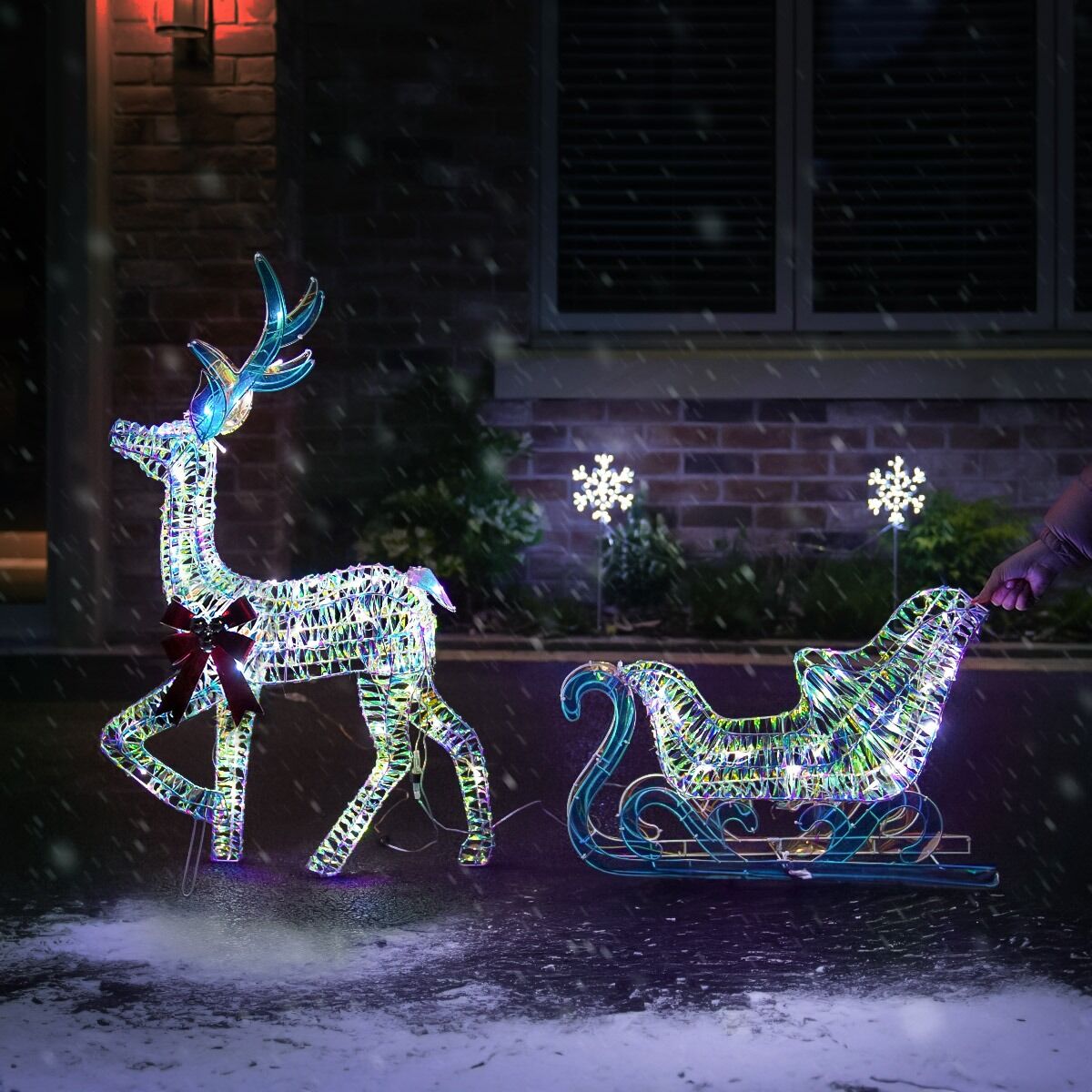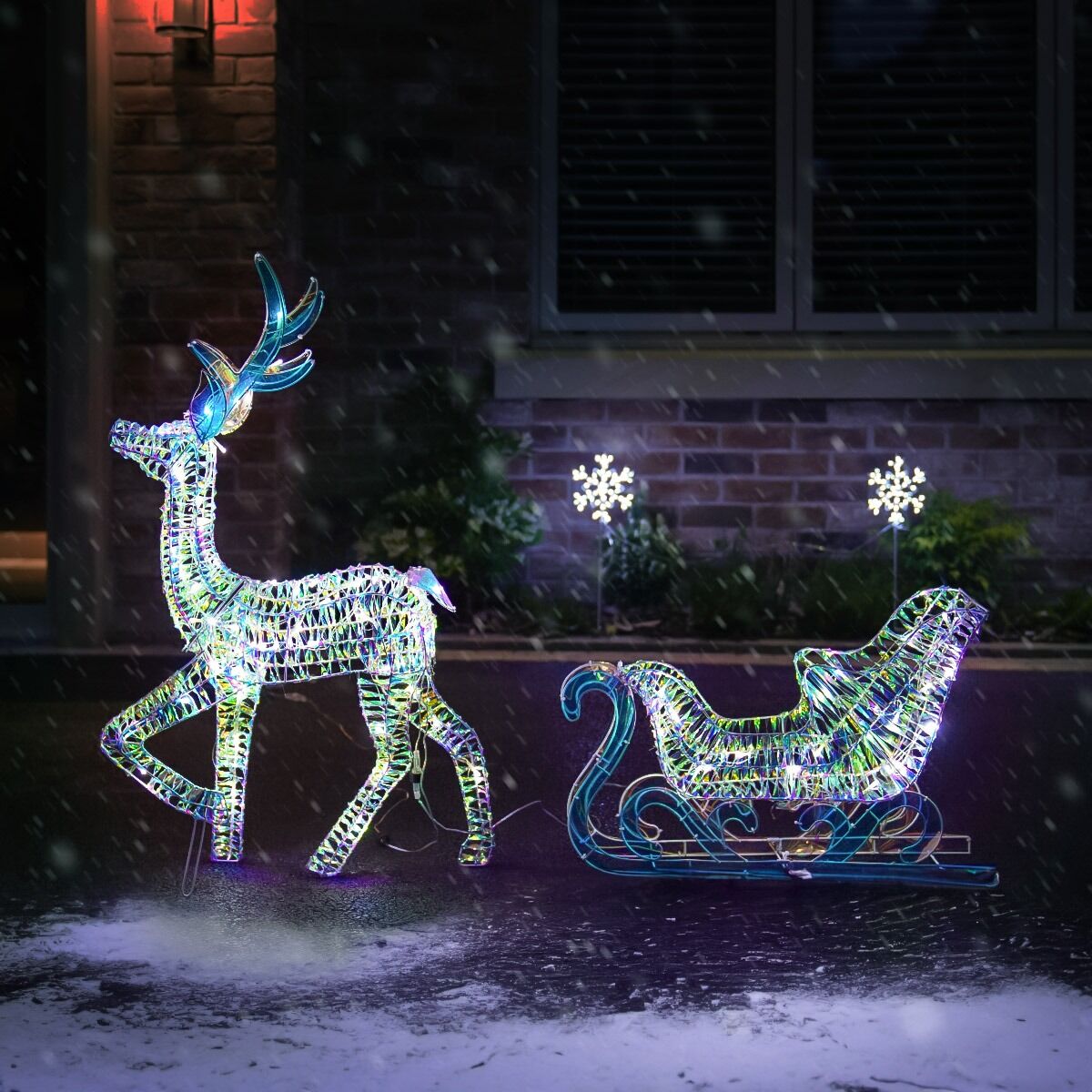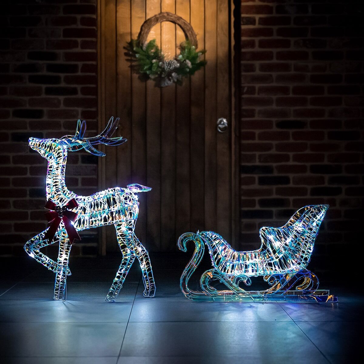 1.2m Outdoor Iridescent Reindeer & Sleigh Christmas Figure Set