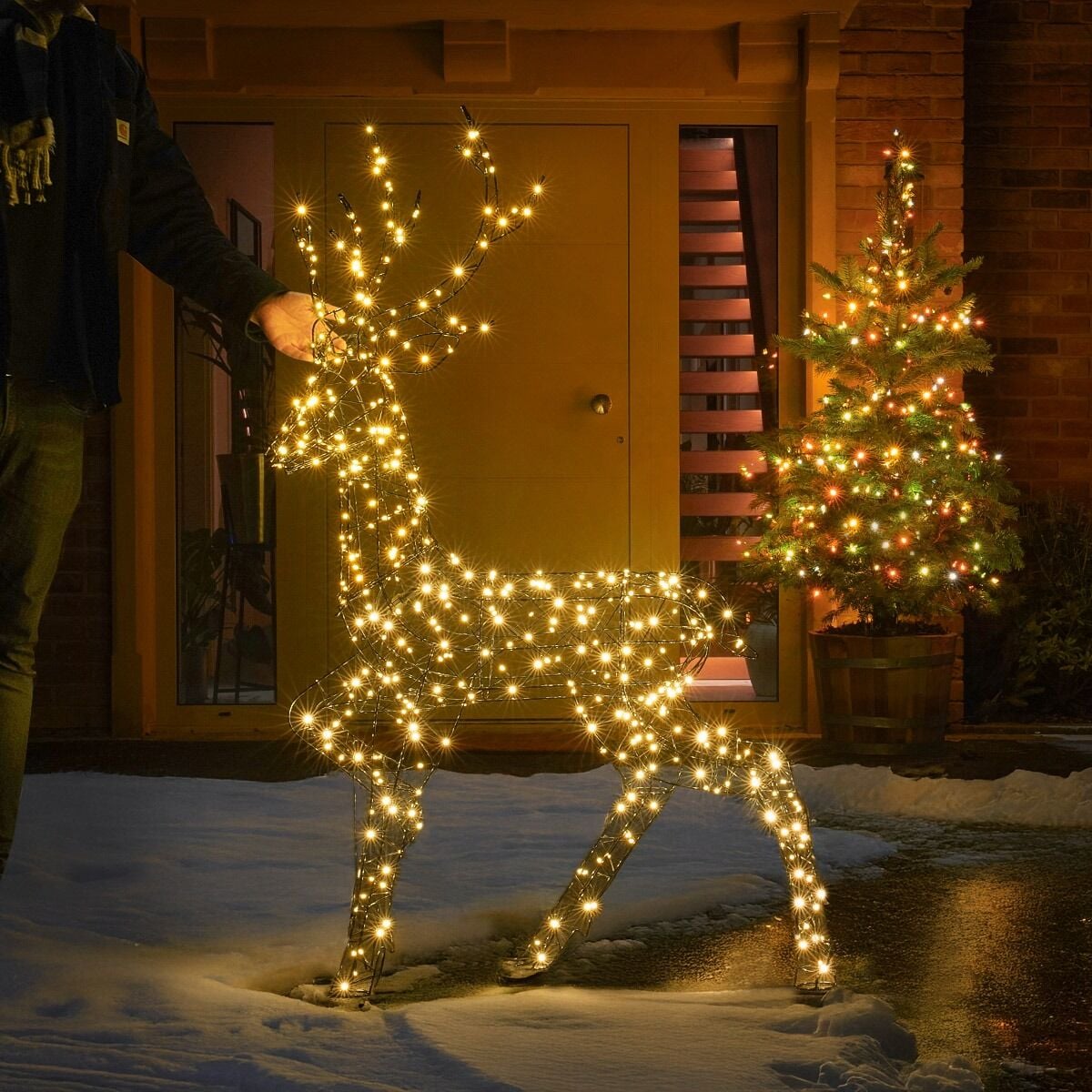 A traditional symbol of all things Christmas, this freestanding deer has a sturdy metal and plastic frame which makes him both lightweight and robust against the harsh winter weather, making it ideal for seasonal outdoor use. The black bodice will melt seamlessly into the night, allowing the 420 warm white flexi wire LED bulbs to shine brightly in contrast to the dark surroundings.