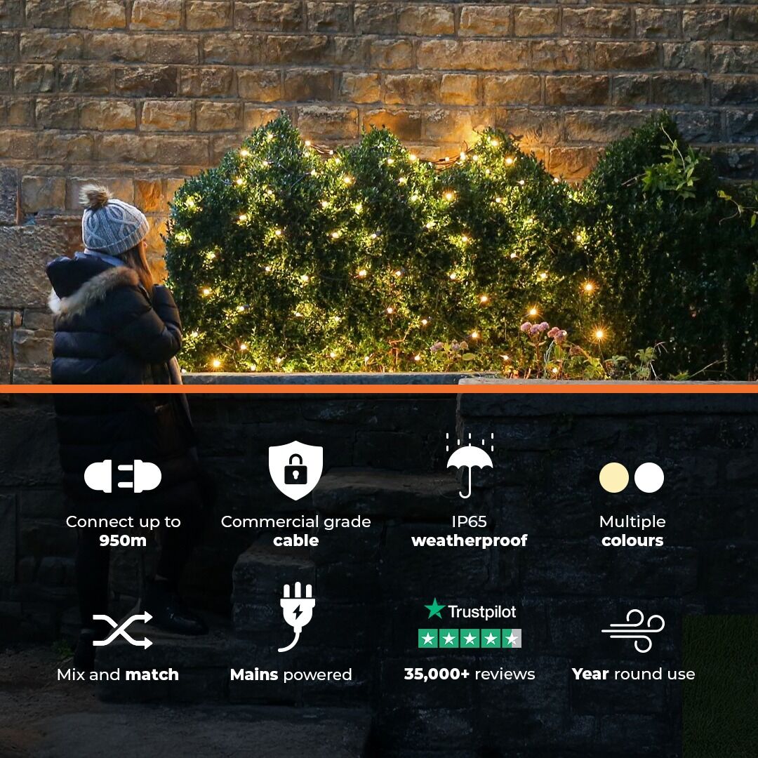 As part of our mains voltage connectable lights system, from just one plug you can connect together multiple nets to meet your required needs saving you time, money and plug sockets.