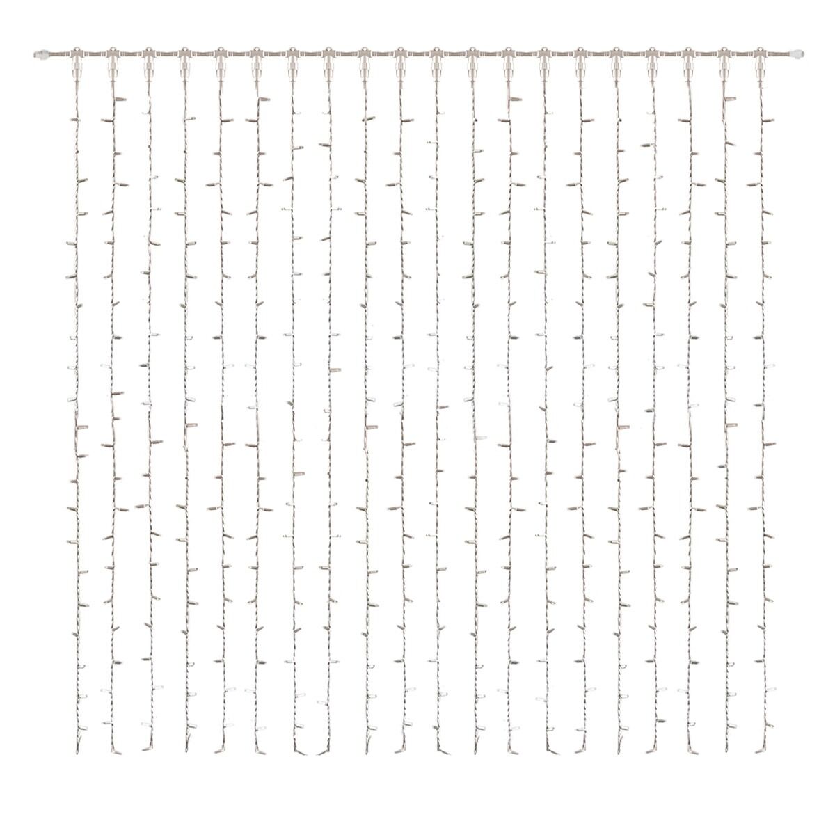 This commercial quality curtain light features 400 LED lights in warm white, measures 2m (H) x 2m (W) and comes on a white rubber cable.