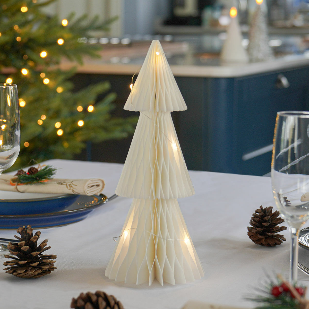 Available in either timeless cream or festive green, these 30cm tall paper trees are not only environmentally friendly, but they’re also lightweight and quick and easy to assemble. The stylish colours will fit seamlessly into anyone’s festive colour scheme, and the trees themselves come effortlessly draped in 10 static warm white LEDs to ramp up the Christmas cheer.