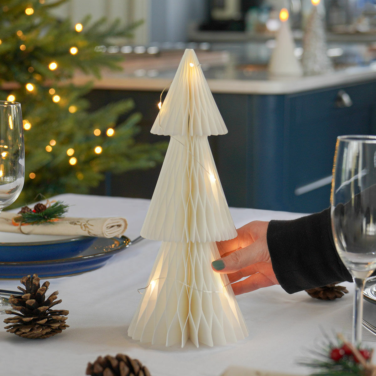Simple yet elegant, these paper honeycomb-effect Christmas trees are the perfect subtle addition to your Christmas display.