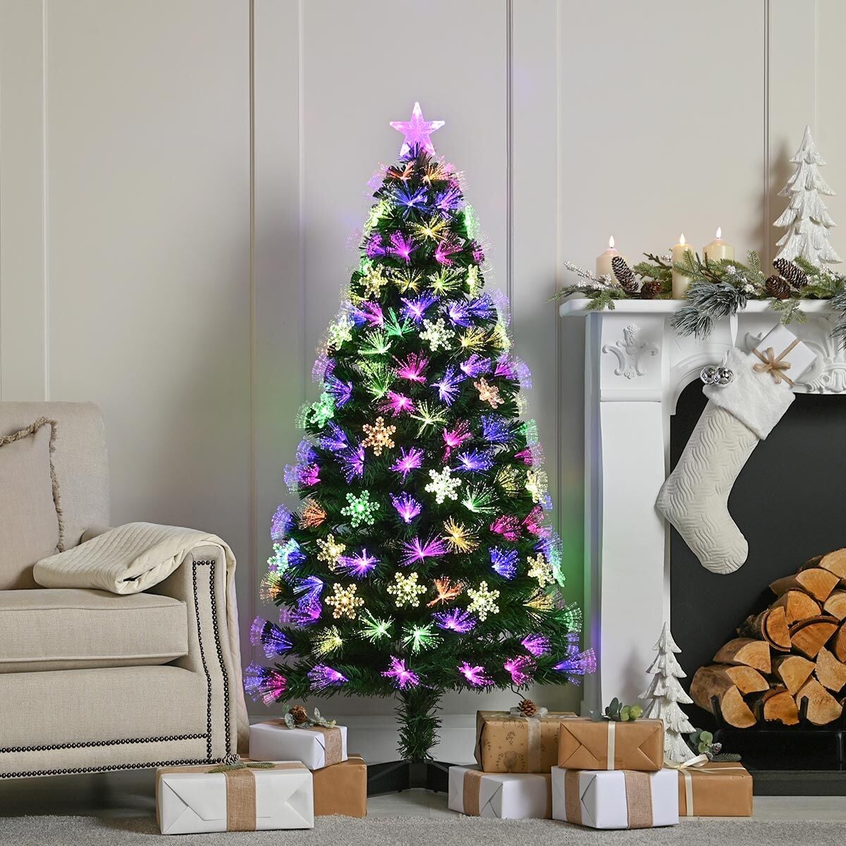 3ft Fibre Optic Multicolour Snowflake Christmas Tree