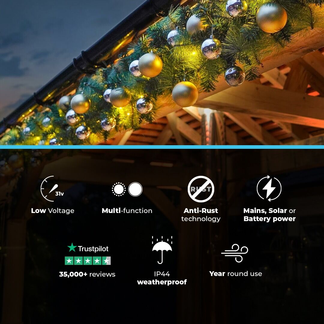 3m Outdoor ConnectGo® Christmas Garland with Baubles, 50 Warm White LEDs