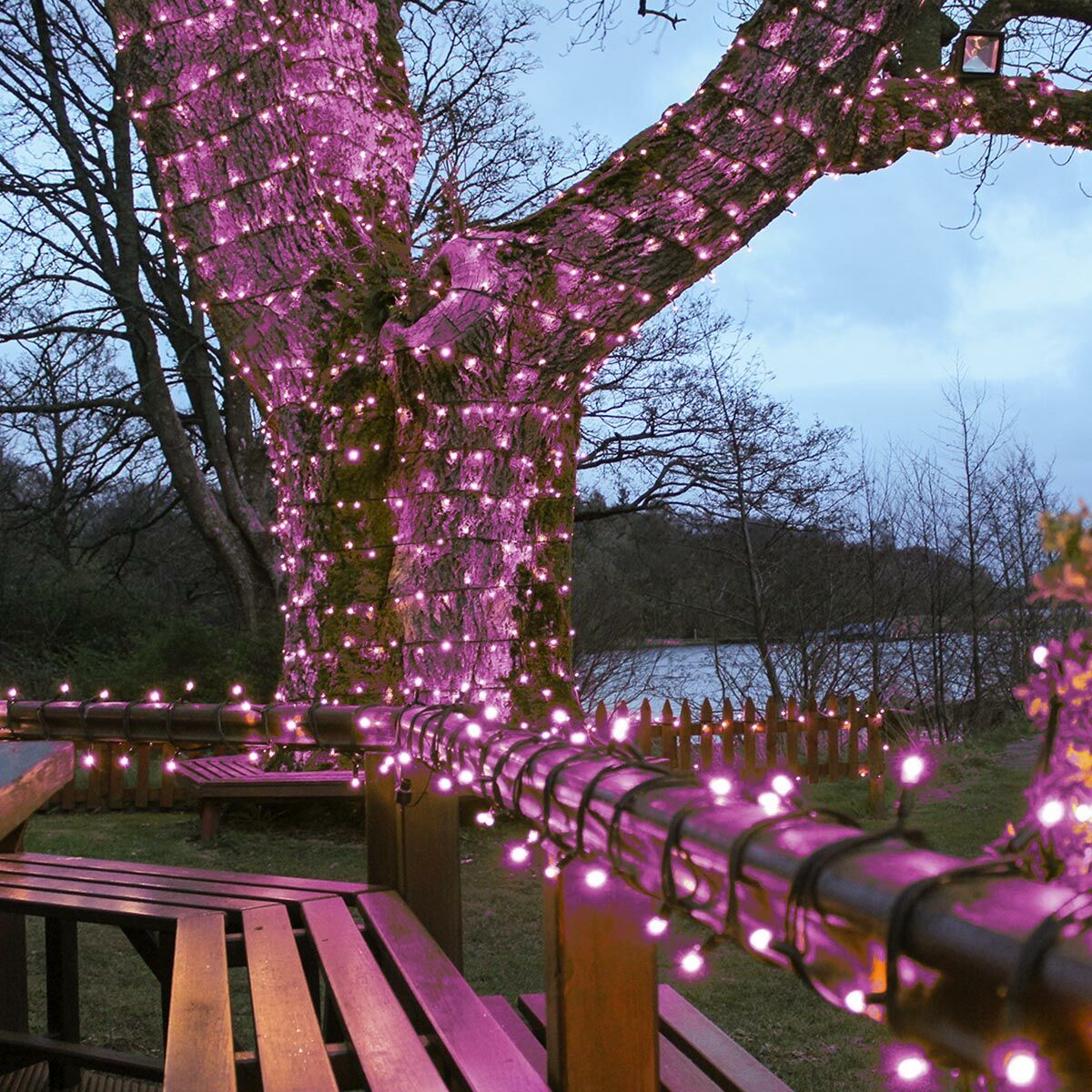 5m Pink 40 LED Connectable String Lights on Black Rubber Cable