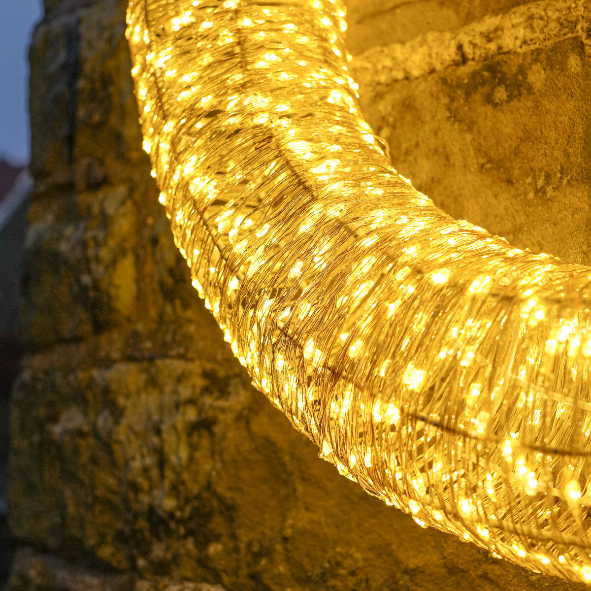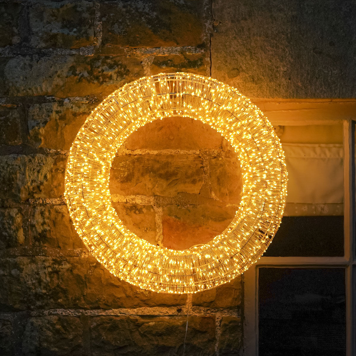 Create a show-stopping seasonal display with this warm white micro wire wreath light. At 60cm in diameter, this beautiful circle decoration features an impressive 1,680 micro warm white LEDs.