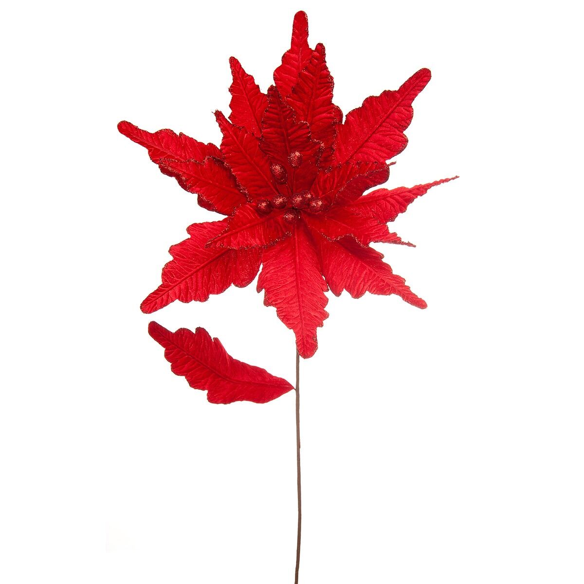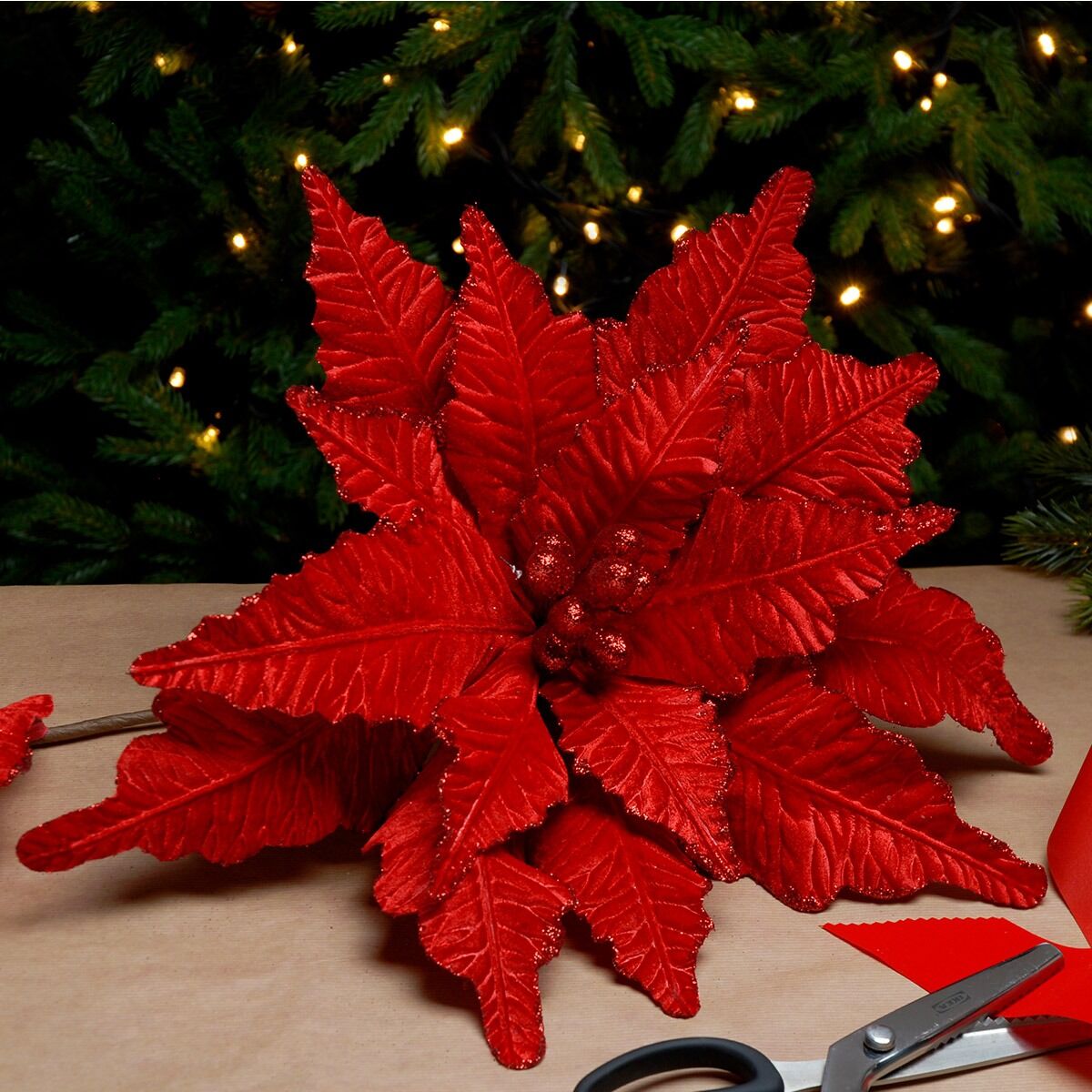 68cm Red Velvet Glitter Poinsettia Christmas Tree Decoration, 4 Pack