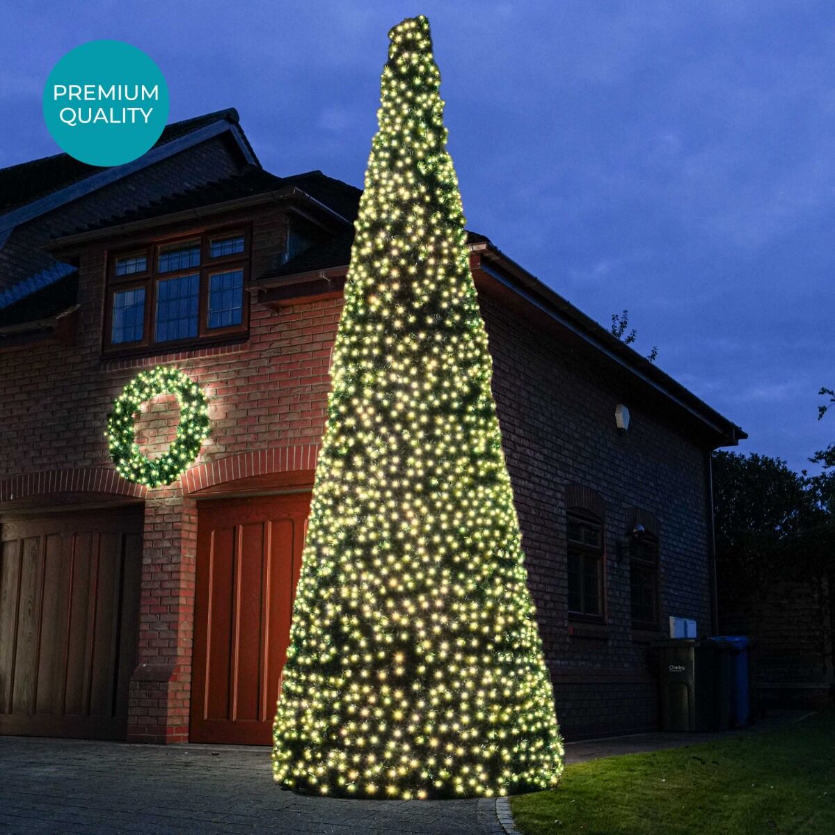 6m Outdoor Green Commercial Pre Lit Christmas Cone Tree, Rubber Cable Warm White ConnectGo® LEDs
