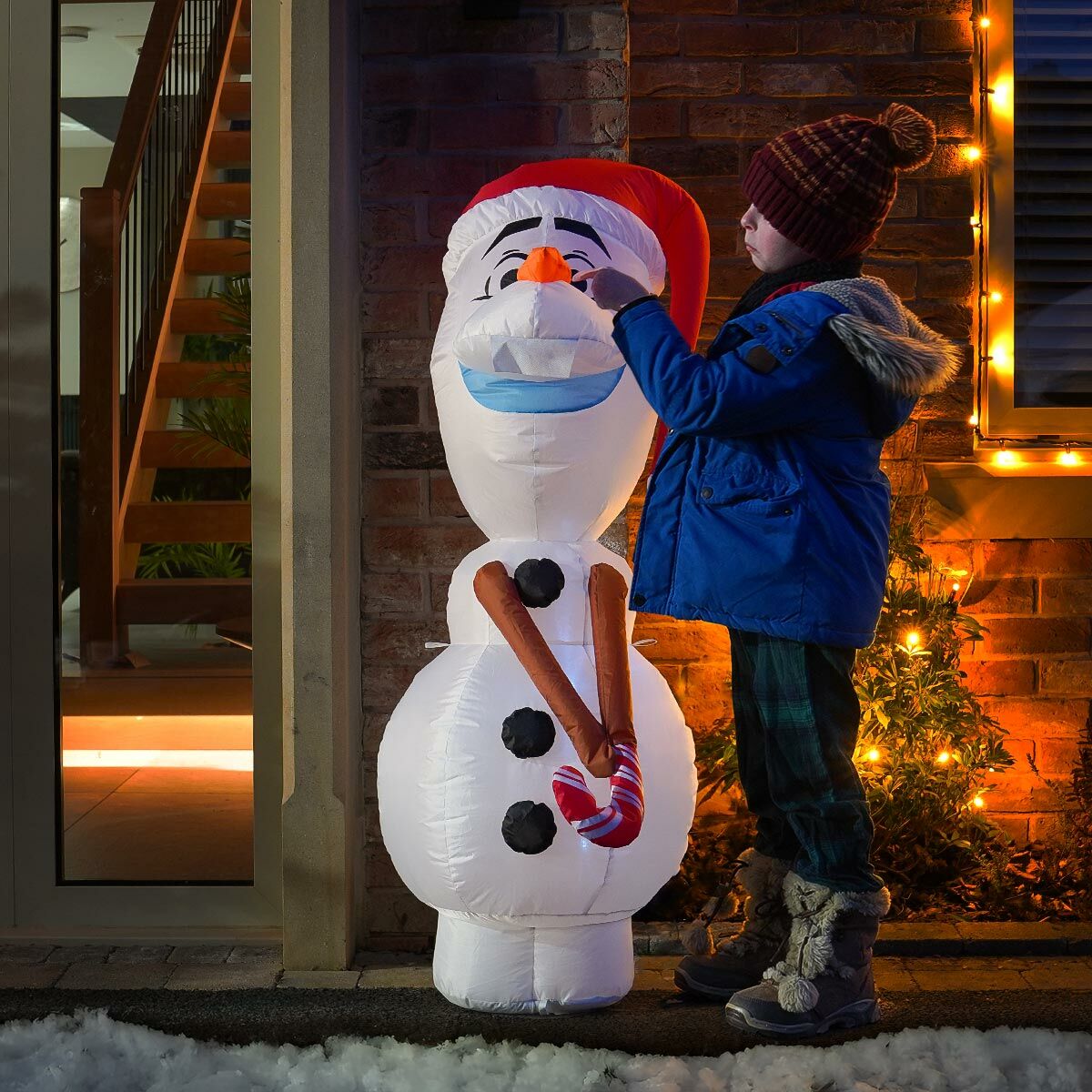 With a generous 1.8m clear lead cable length, you have the power to position this happy little frosty fellow wherever you deem fit. Be it for parties, events, or simply spreading some Christmas cheer to your neighbours – as long as his transformer is kept indoors at all times, he will glow brightly for all to see all night long. With the built-in inflator, convenience is key, and nothing is as easy as incorporating Olaf into your festive display – simply plug him in, sit back and relax while Olaf brings the smiles all season long. After all, you know what they say, some people are just worth melting for.