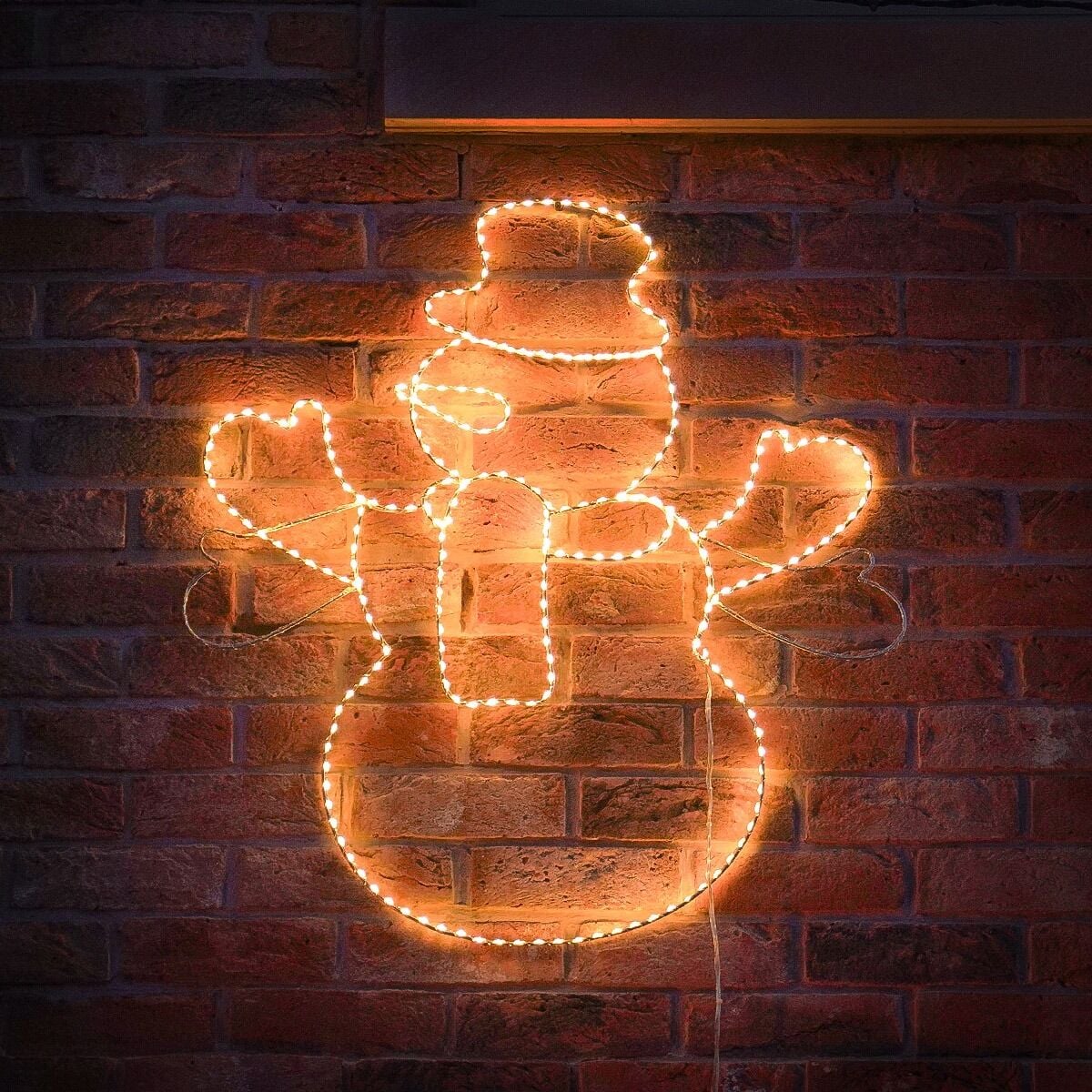 Frosty the Snowman has a jolly, happy glow with 320 warm white LED bulbs outlining his charming, welcoming frame.