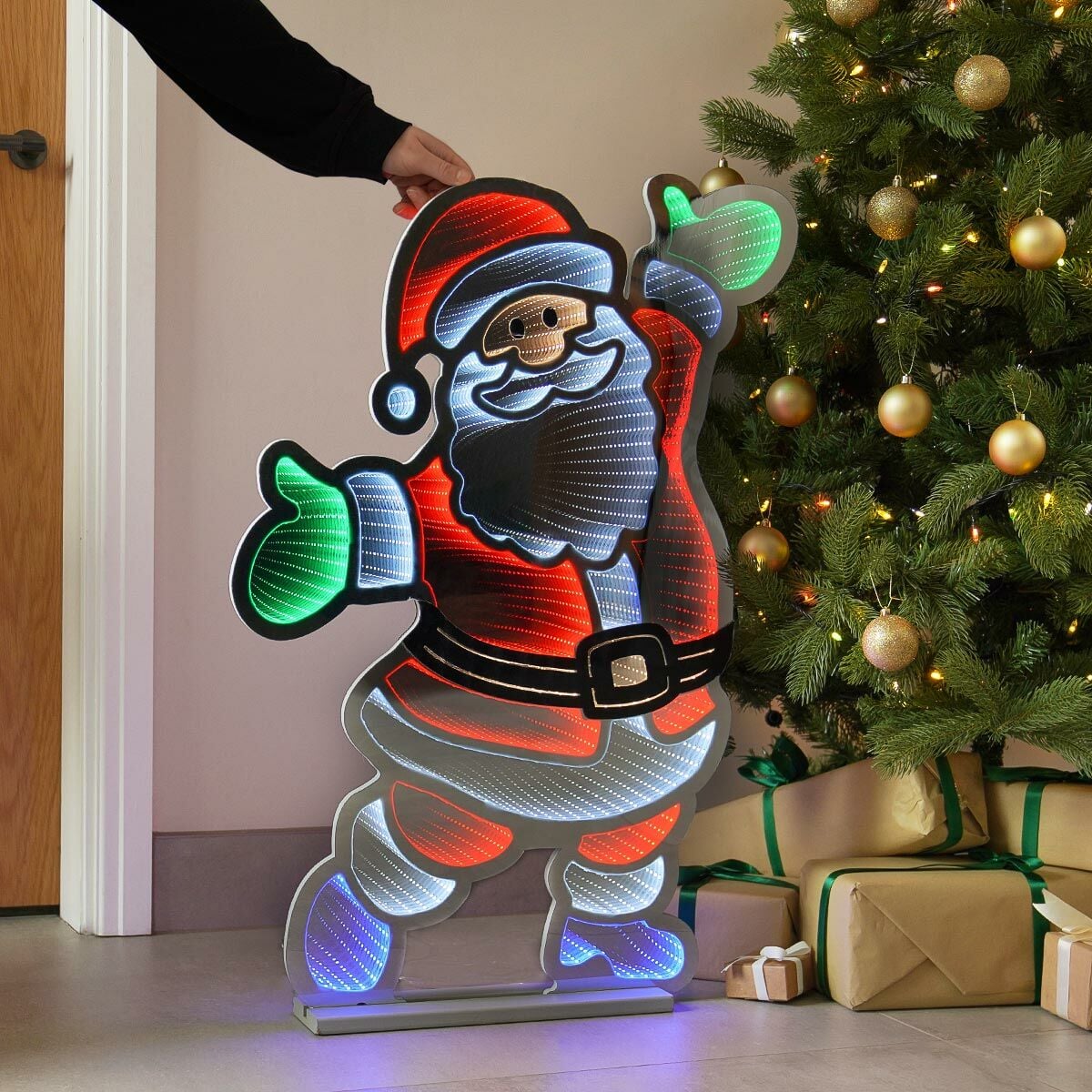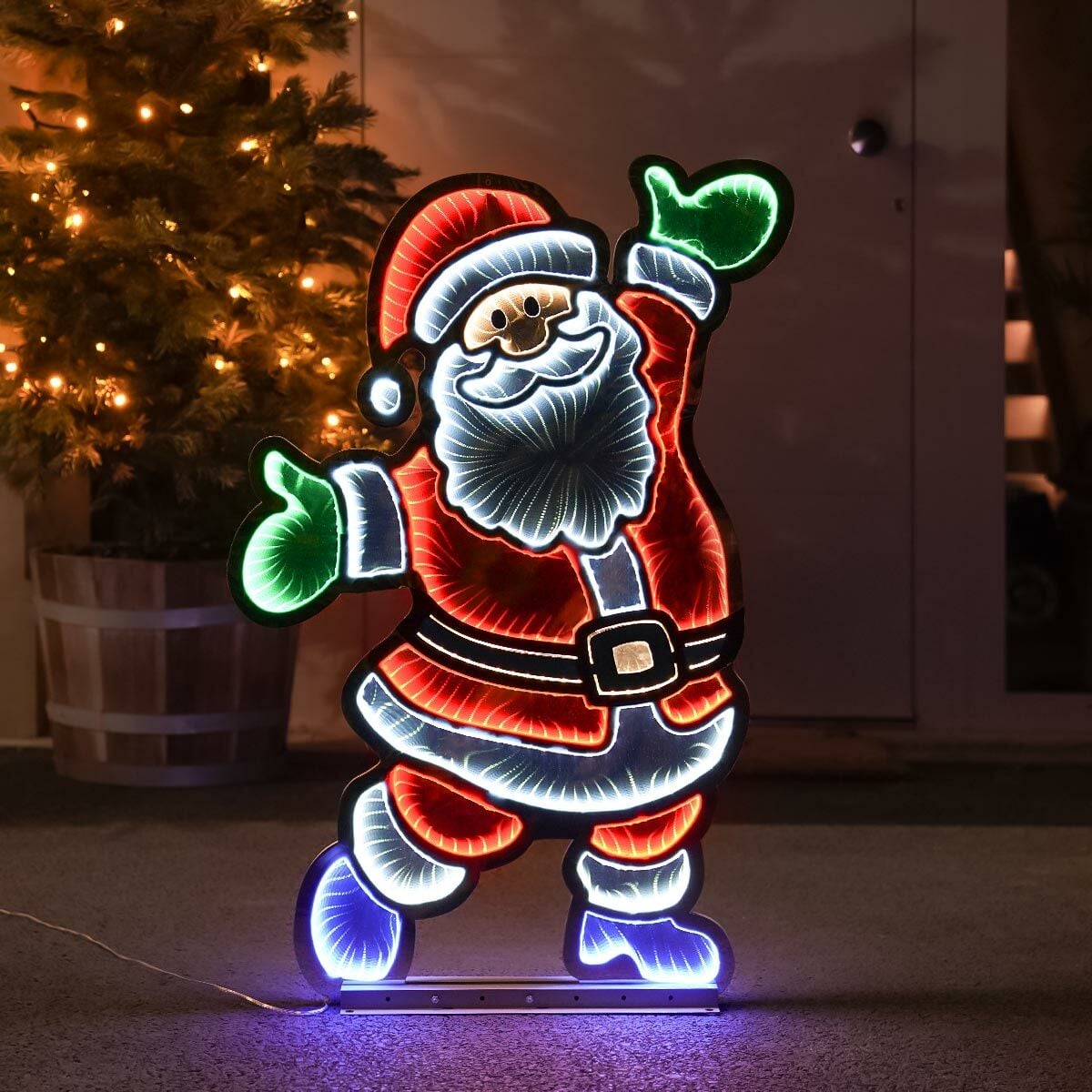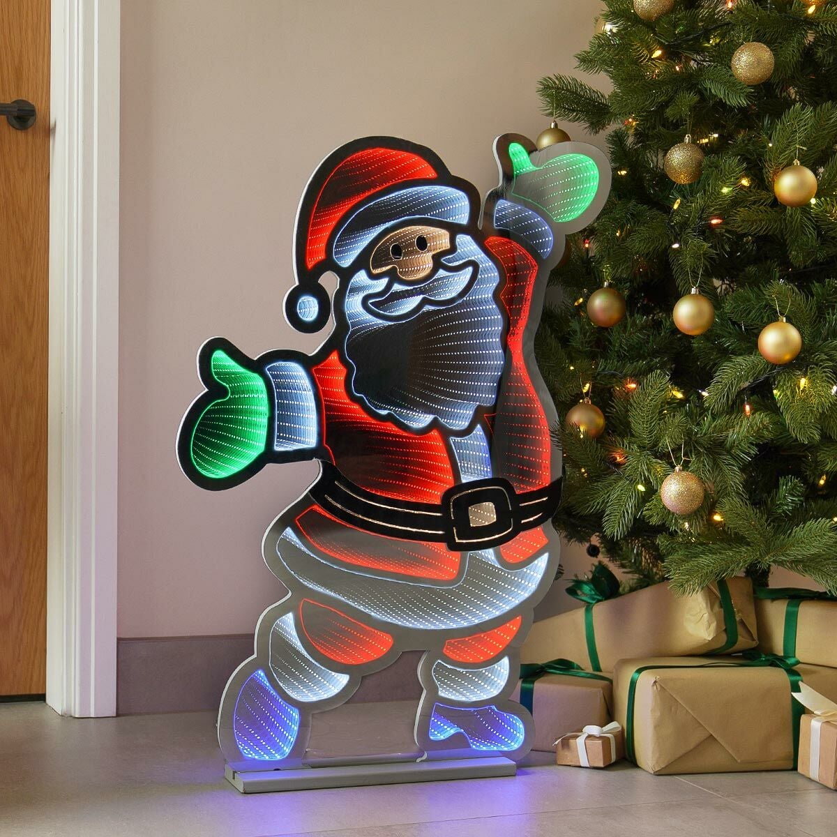 Standing at 90cm tall, this impressive infinity light is home to 687 red, white, green and blue SMD LED bulbs, which bring this jolly old soul to life! The bulbs, which are nestled within the EVA and PET bodice, appear to drift off further and further into the distance, creating something truly magical. It’s never been easier to create a truly eye-catching, mesmerising display that the whole family will enjoy.