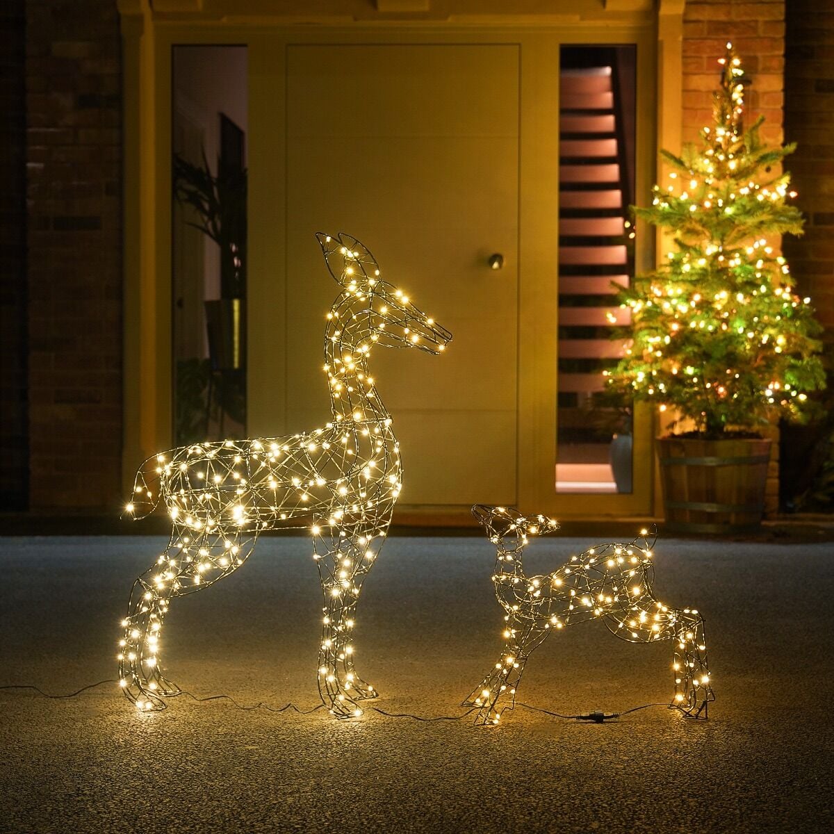 Black Frame Doe & Fawn Outdoor Light up Reindeer