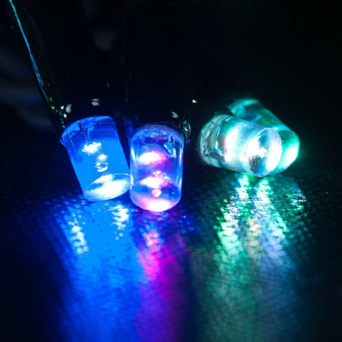 This commercial quality string light with slow colour-changing LED bulbs is connectable up to 950 metres (7600 LEDs) and comes on a black rubber cable with built-in connectors.