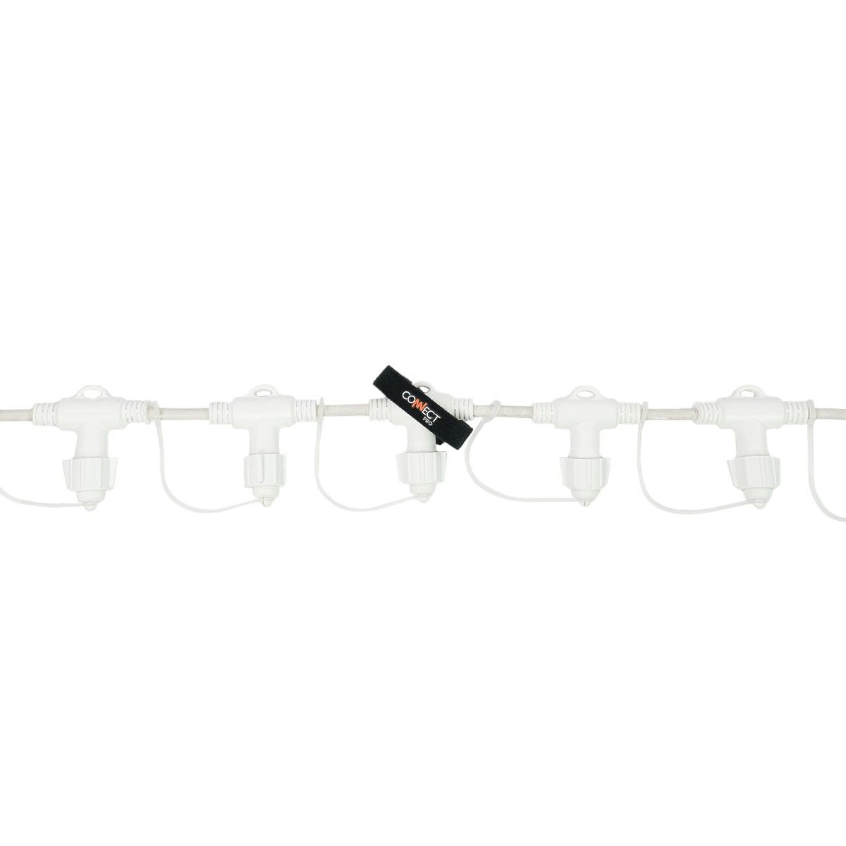 The curtain accessory is used to convert a number of standard strings of lights into a curtain effect. Standard string lights typically join end to end like a daisy chain but when they are used with the curtain connector they simply hang down from the 9 ports available.