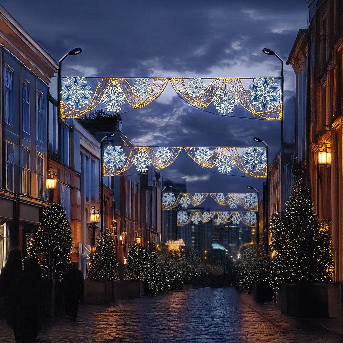 Elevate your display above the rest with this impressive street motif. Ideal for positioning high above highstreets, Christmas markets and event entrances, this staggering motif is the ultimate warm welcome that your guests deserve.