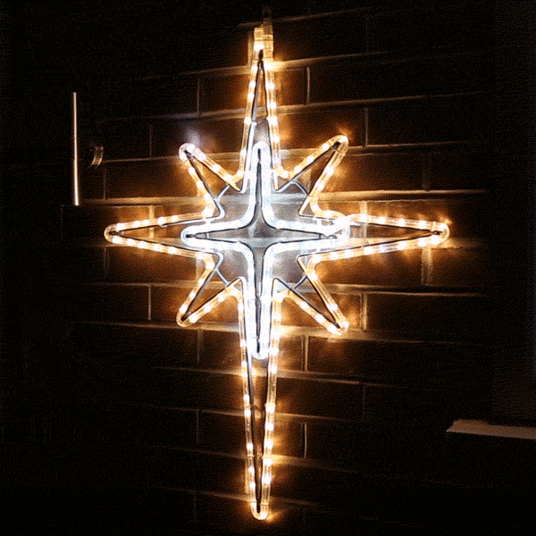 With traditional tones, this north star motif has firm roots in the nativity story in which the 3 wise men follow the star to Jerusalem! Meaning that with this star, you can create your very own welcome to Christmas this year. This sparkling star motif looks great next to or above a doorway, or alternatively, it places well on exterior walls and buildings! It's the perfect, versatile Christmas decoration for all to love.