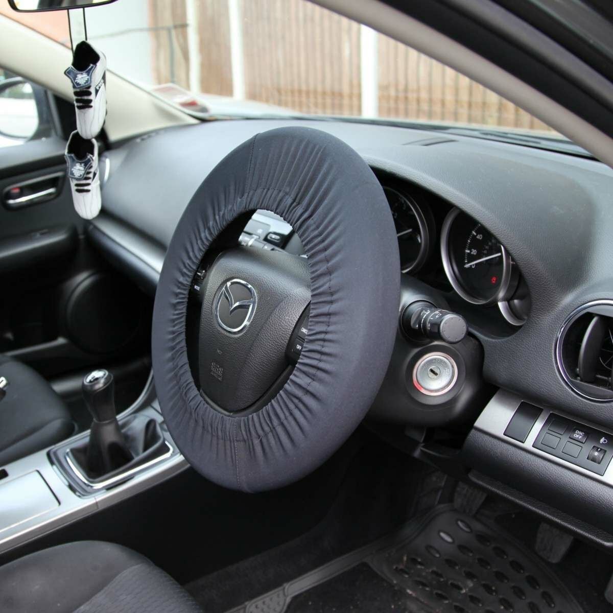 This soft, stretch fit steering wheel cover for Disklok will help prevent lay marks and scratches on soft leather wheels. Extremely easy to fit to the wheel and easily stored inside your Disklok when not in use.