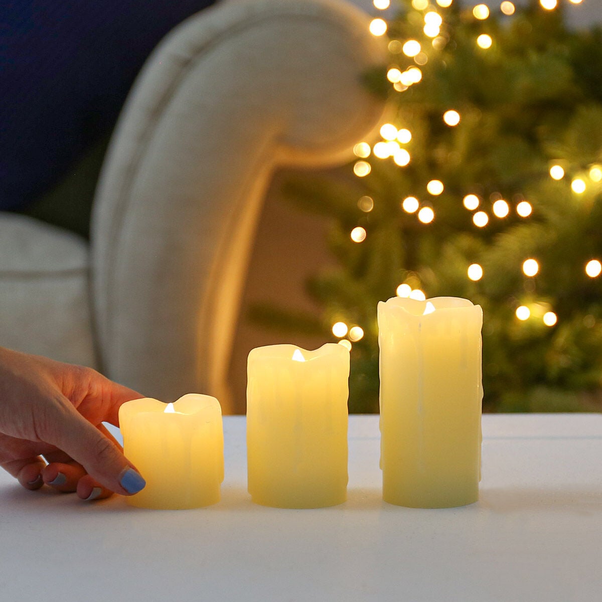 The slow flickering warm white LED within each candle offers a beautiful, warm atmosphere glowing through your home at night, whilst the real wax 'tears' dripping from the edge of the candles really completes the visual effect!