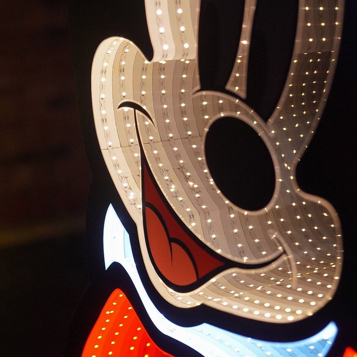 Standing at an impressive 1.6m in height, this sensational Mickey is home to 1,152 red, white and yellow SMD LED bulbs, which are safely housed within his aluminum, PET and EVA body. And as he’s a 3D decoration, you have the freedom to position him wherever you wish, knowing in full confidence that his lights will continue to stream further and further into distance for all to see – how convenient!