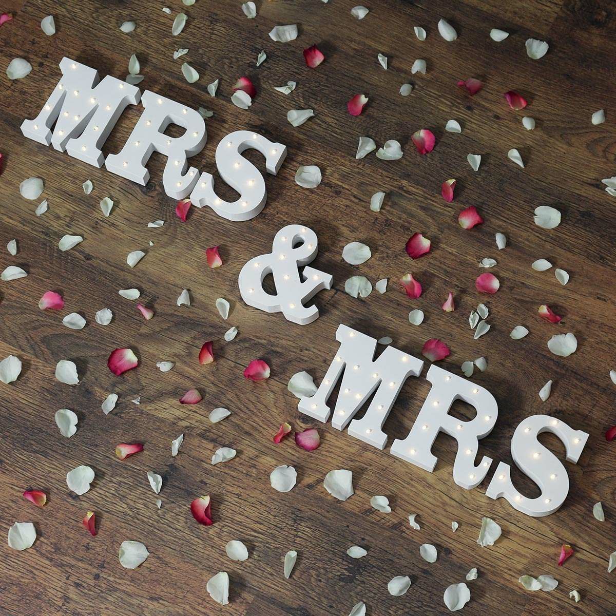 As part of the modern trend for home and event lighting, our Mrs & Mrs battery light up circus letters are designed to bring a touch of Hollywood glitz and glamour to your home or event décor. Traditionally, these stunning letters were used as backdrops for weddings, but we now offer them in smaller, affordable options, making them suitable for use around the home, as well as table centrepieces.