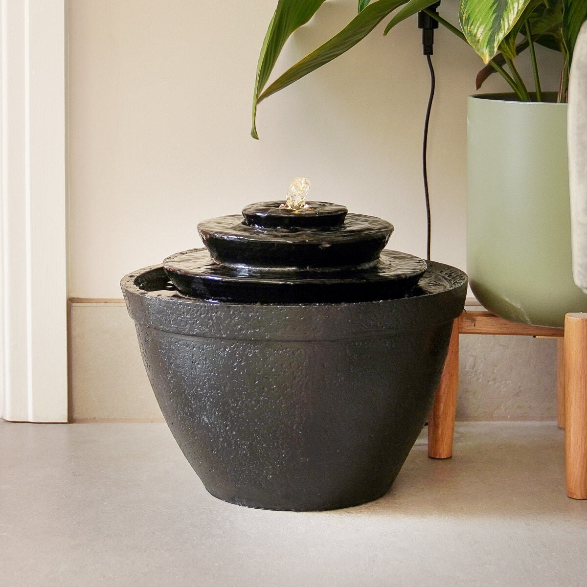 Plug-in & Solar Water Feature Black Cascading Bowl 30cm
