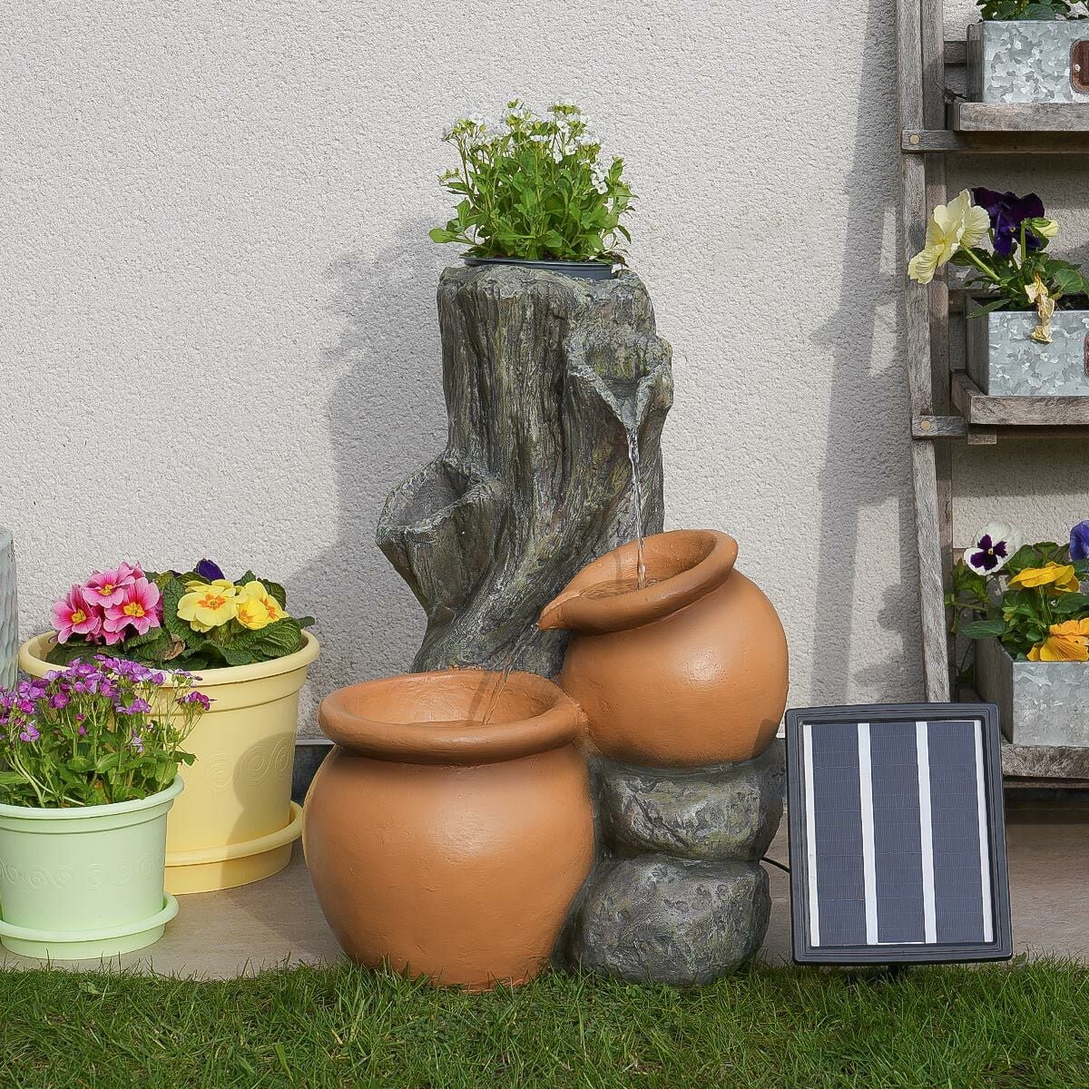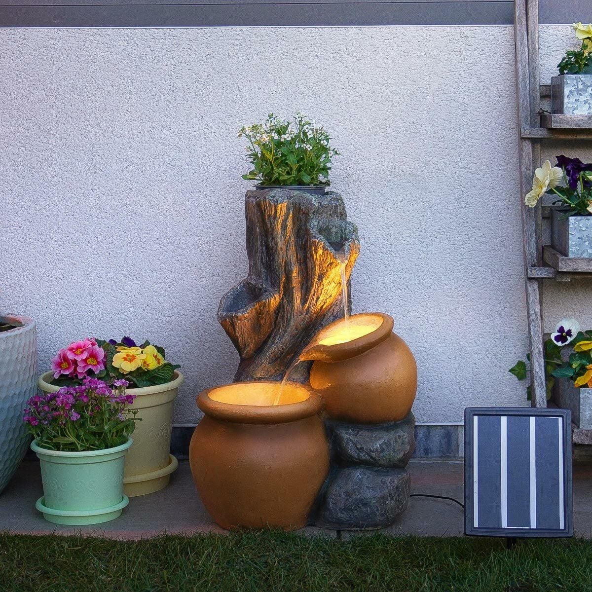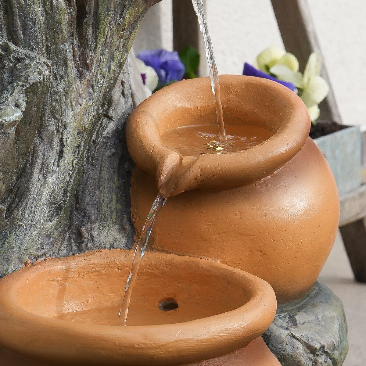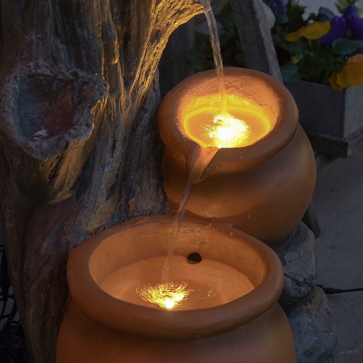 Made from lightweight polyresin but designed to look like natural tree trunk and terracotta pots, this water feature is the perfect combination of beauty and style. Housed within the fountain, you'll find 2 warm white LED bulbs, offering a gentle source of welcoming light beneath the bubbling waters.