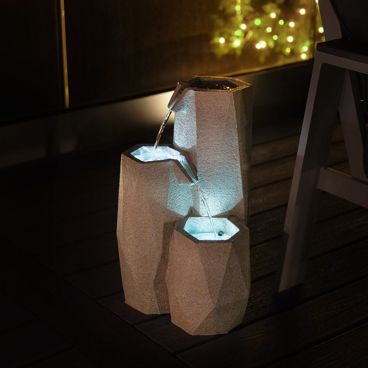 This stylish water feature is made from lightweight polyresin, making it perfect for patios, gardens and decked areas, as well as conservatories and orangeries. Housed within the fountain, you’ll find two bright white LED bulbs, offering a gentle source of lighting beneath the bubbling waters.