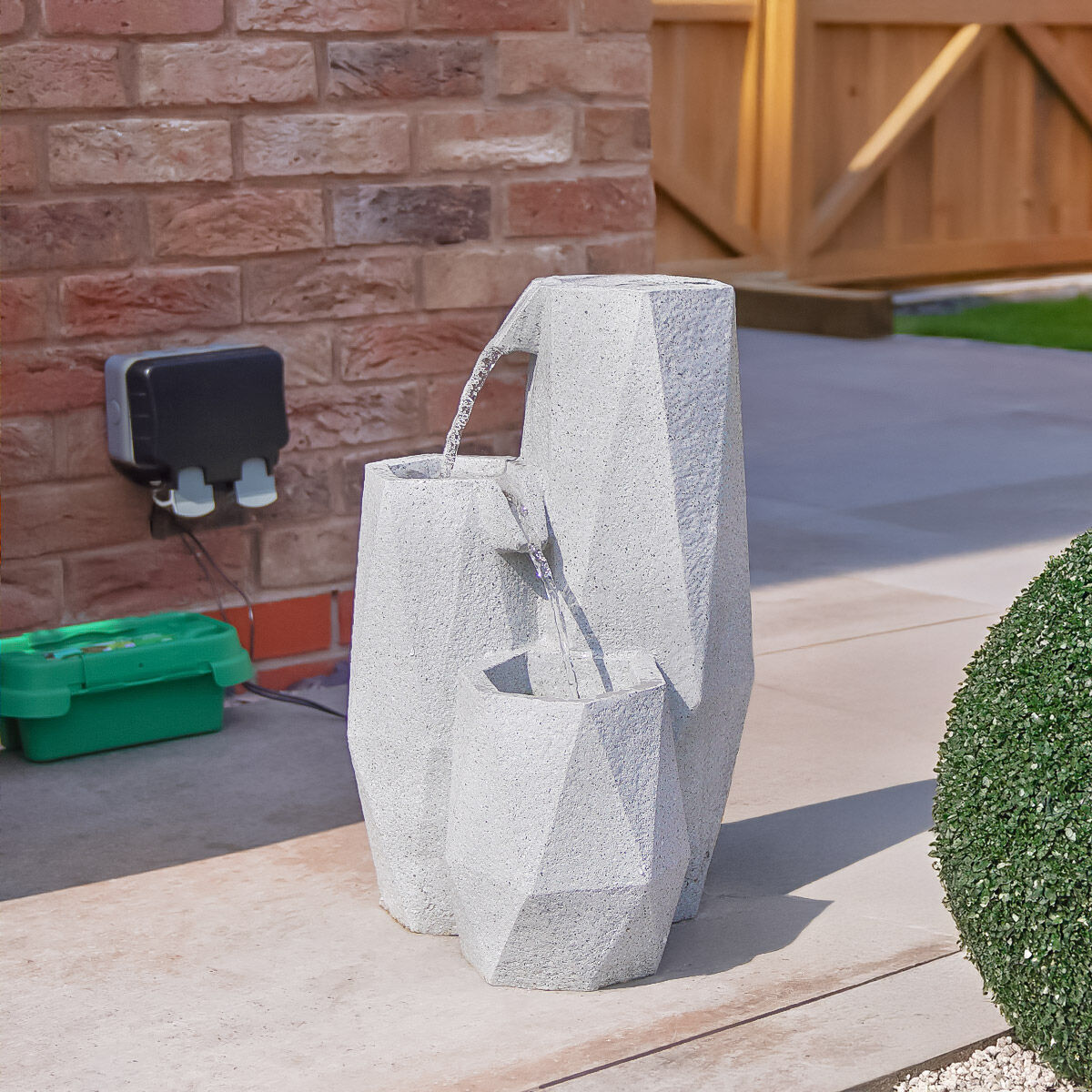 This modern, solar water feature makes for an attractive, relaxing addition to any home and garden. Boasting a contemporary finish and geometric pattern, you can now enjoy year-round tranquillity with solar and plug-in power options.