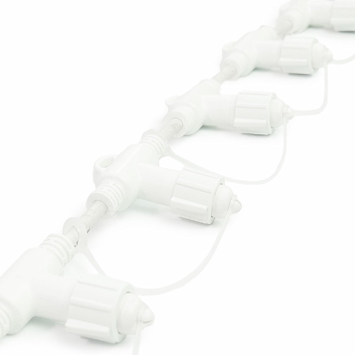 The curtain accessory is used to convert a number of standard strings of lights into a curtain effect. Standard string lights typically join end to end like a daisy chain but when they are used with the curtain connector they simply hang down from the 9 ports available.